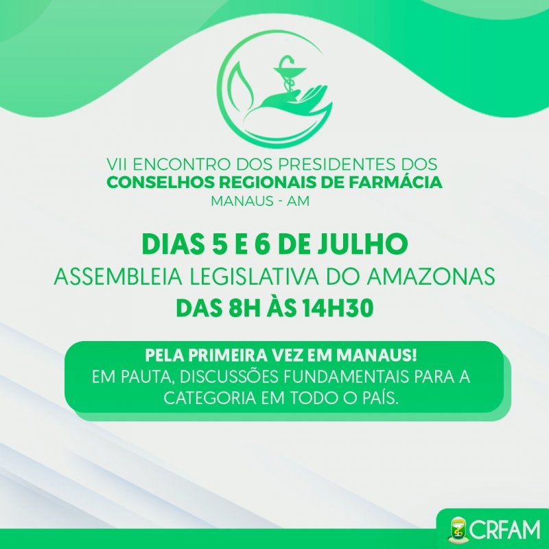 O Encontro acontecerá na Assembleia Legislativa do Estado do Amazonas, das 8h às 14h30, nos dias 5 e 6 de julho, e irá discutir diversos temas de relevância para a categoria farmacêutica em âmbito nacional.