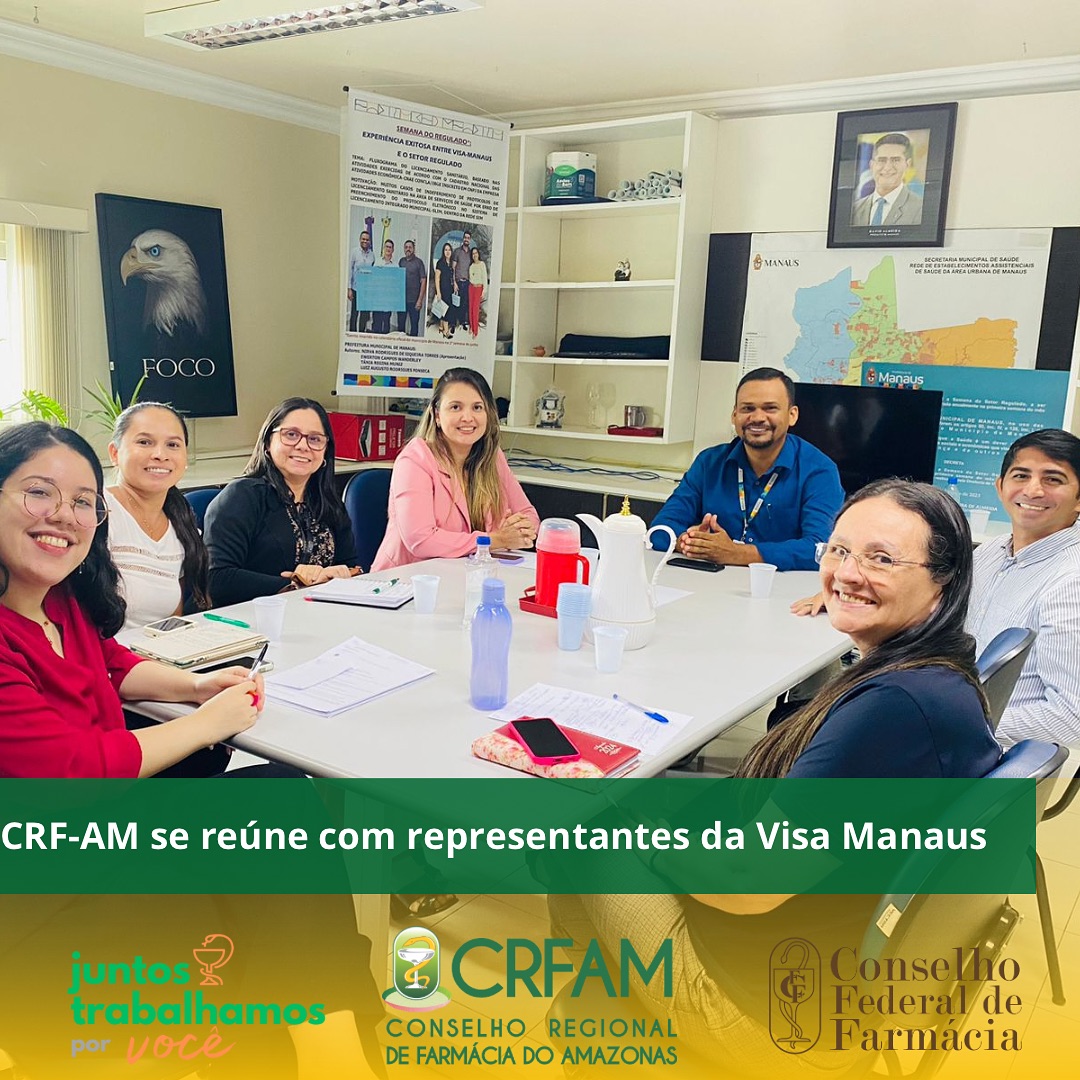 O Vice-Presidente do Conselho Regional de Farmácia do Amazonas, Dr. Reginaldo Costa, e as fiscais farmacêuticas Dra. Daiane Costa e Dra. Inez Oliveira estiveram em reunião com o Gerente de Medicamentos da VISA MANAUS, Dr. João Kinsey e equipe.